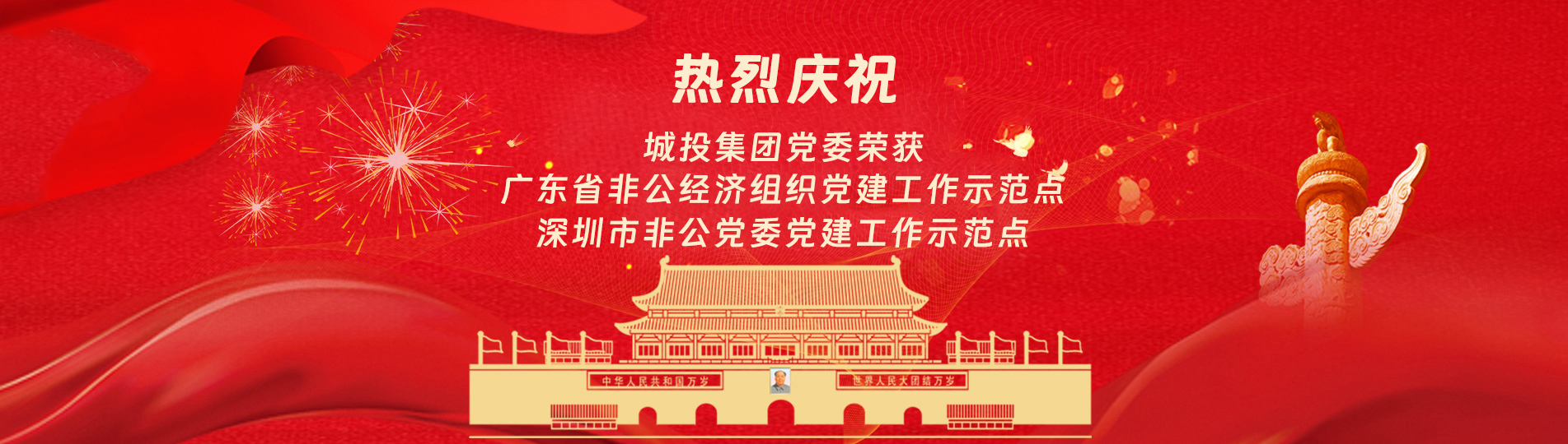 在上級黨委的正確領(lǐng)導(dǎo)下,在城投集團的大力支持下,集團黨委緊緊圍繞企業(yè)發(fā)展戰(zhàn)略,將黨建引領(lǐng)核心貫穿始終,以五心工程(即思政建設(shè)核心工程、經(jīng)營發(fā)展中心工程、企業(yè)文化向心工程、黨建品牌匠心工程、服務(wù)基層愛心工程)為抓手,大膽探索,勇于突破和創(chuàng)新,不斷形成城投黨建特色,有效輸出城投實踐經(jīng)驗,充分發(fā)揮紅色引擎作用,先后獲得深圳市非公黨委黨建工作示范點深圳市兩新組織黨建工作示范點深圳市文明單位深圳市先進基層黨組織廣東省非公有制經(jīng)濟領(lǐng)域黨建工作示范點等榮譽稱號。